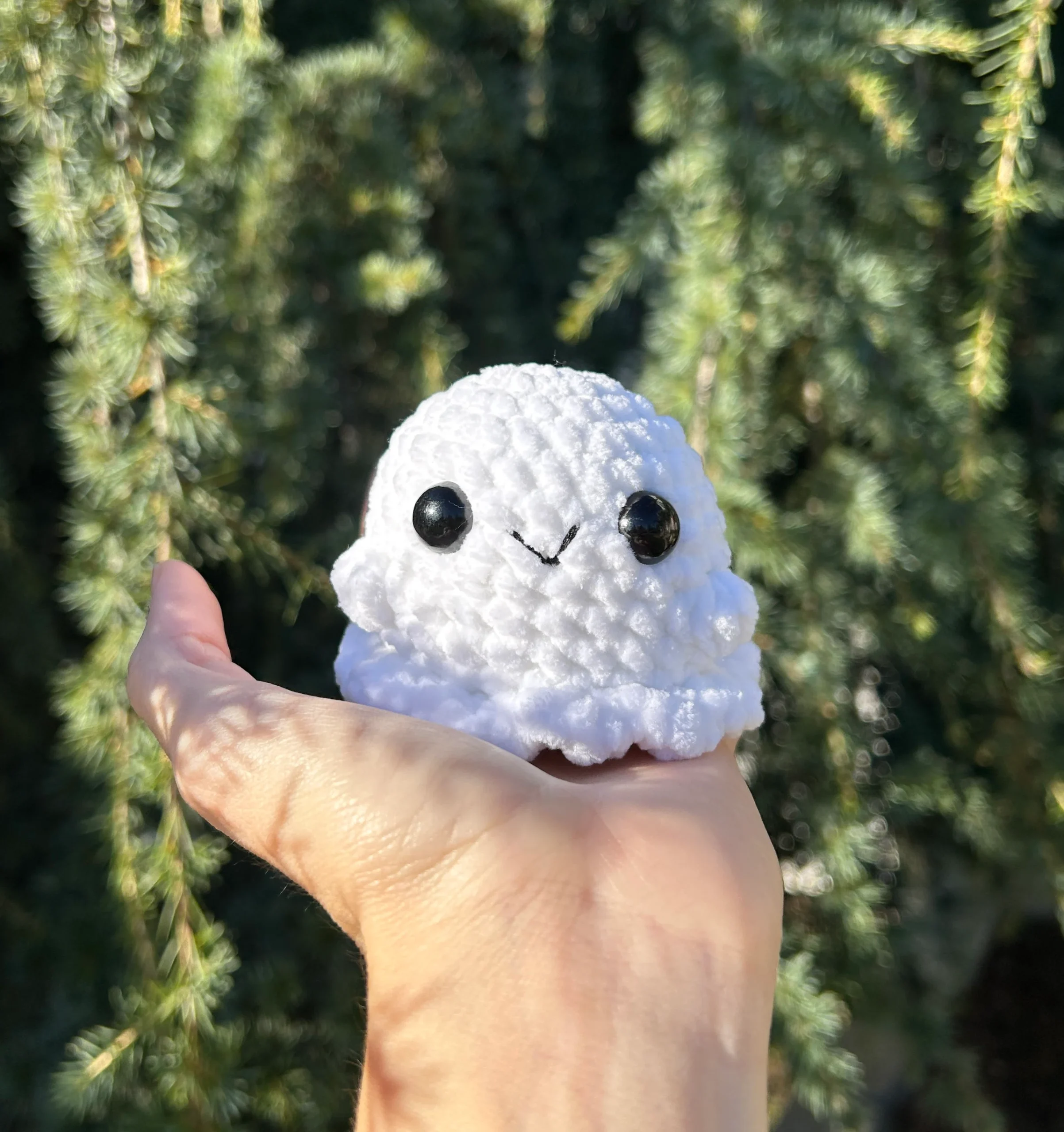 Meet the minis! Adopt a ghost friend or a candy corn buddy, or both! Perfect pocket pals for the Halloween/Autumn season. Made from super soft Parfait Chunky yarn by Premier Yarns and stuffed with polyester fiber fill, these cuties are finished off with 12mm safety eyes and black thread for their smile. They can be a great gift, toy, or decoration!